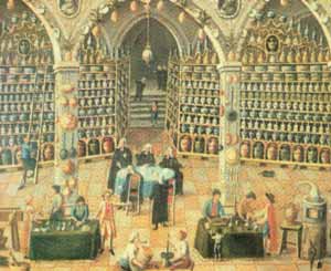 La salle de réception d’une pharmacie. Pendant de nombreuses années, les pharmaciens d’Europe ont analysé et enregistré les propriétés médicinales de beaucoup de nouvelles huiles essentielles.